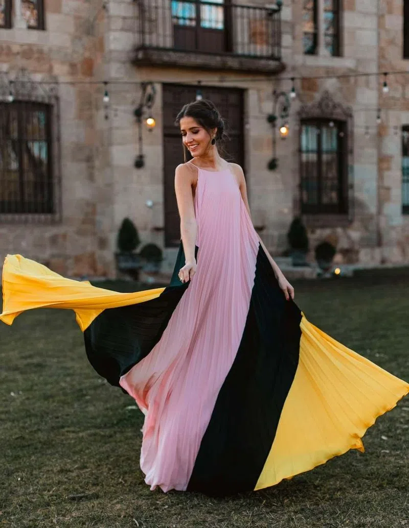 Vestido largo plisado