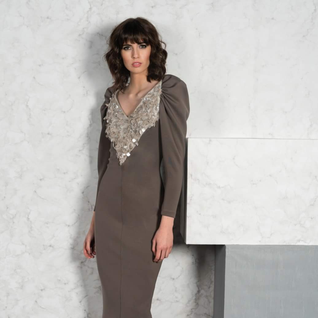 Vestido cuello pedrería