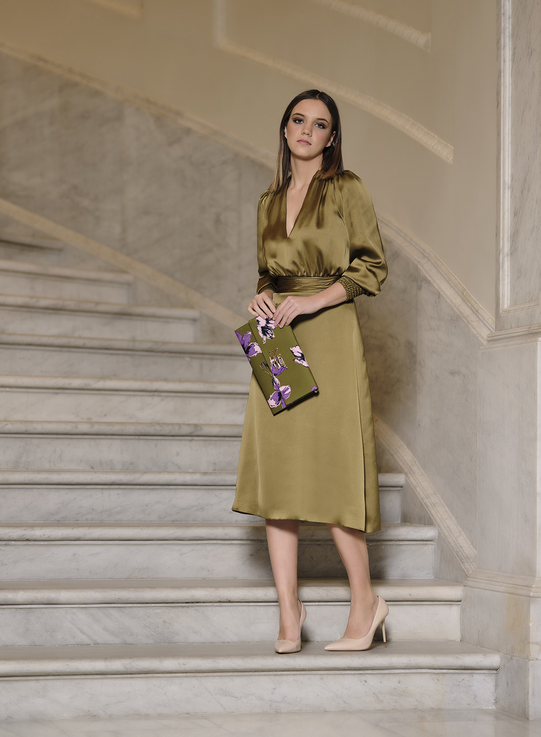 Vestido cuello pico satén cantidad