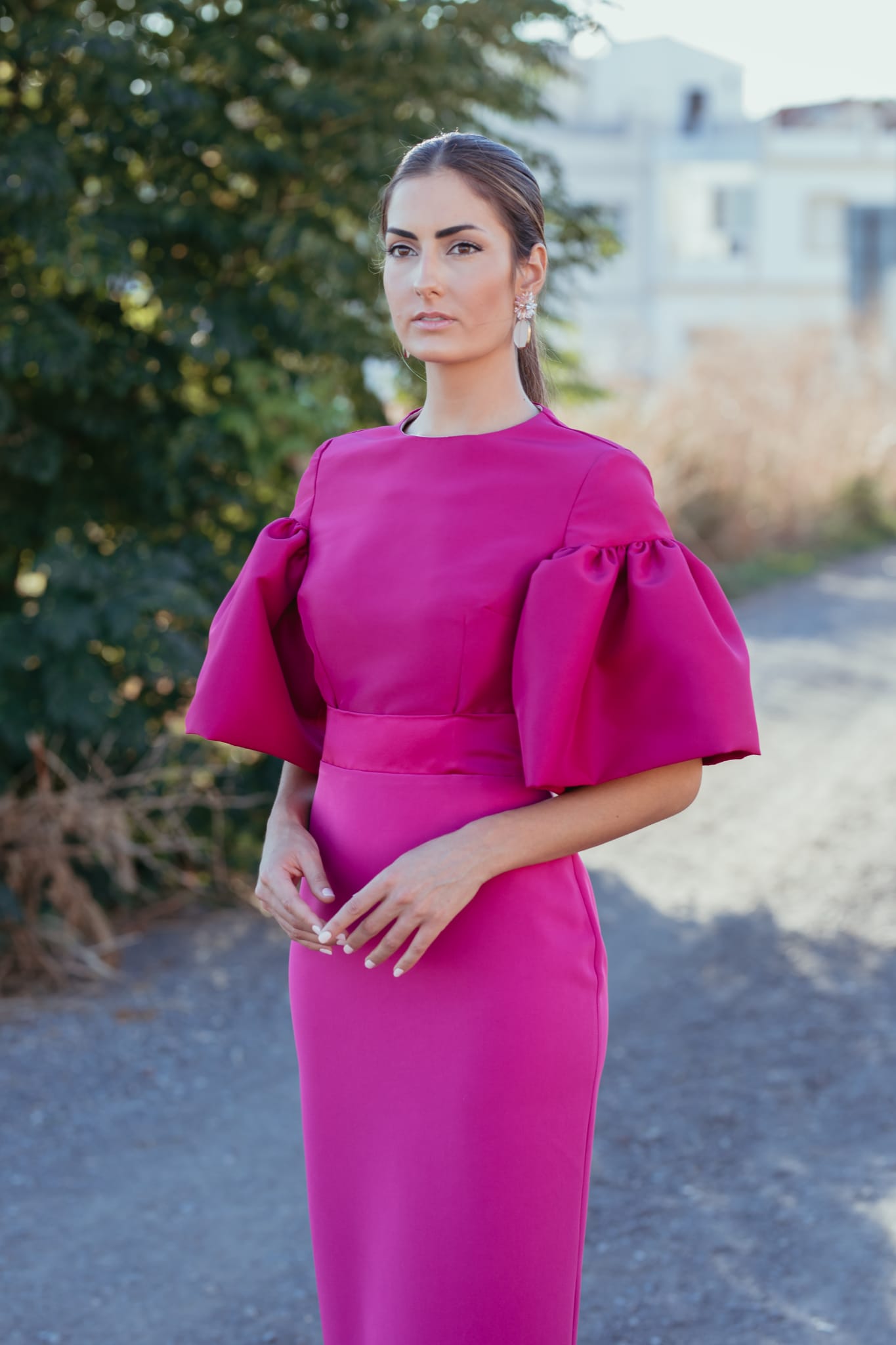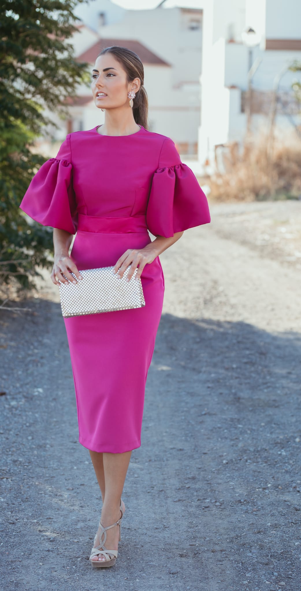Vestido manga fruncida elástica