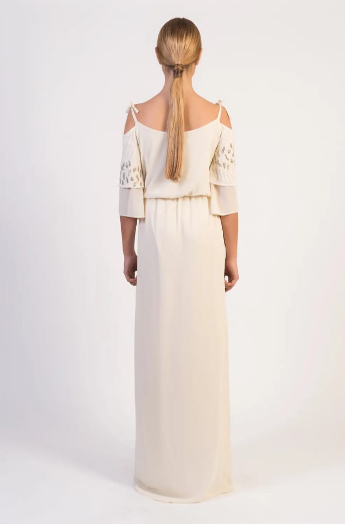 Vestido largo beig detalles dorados