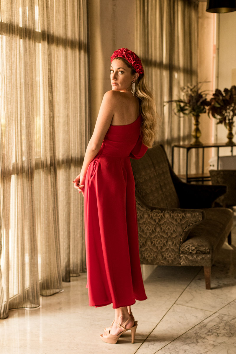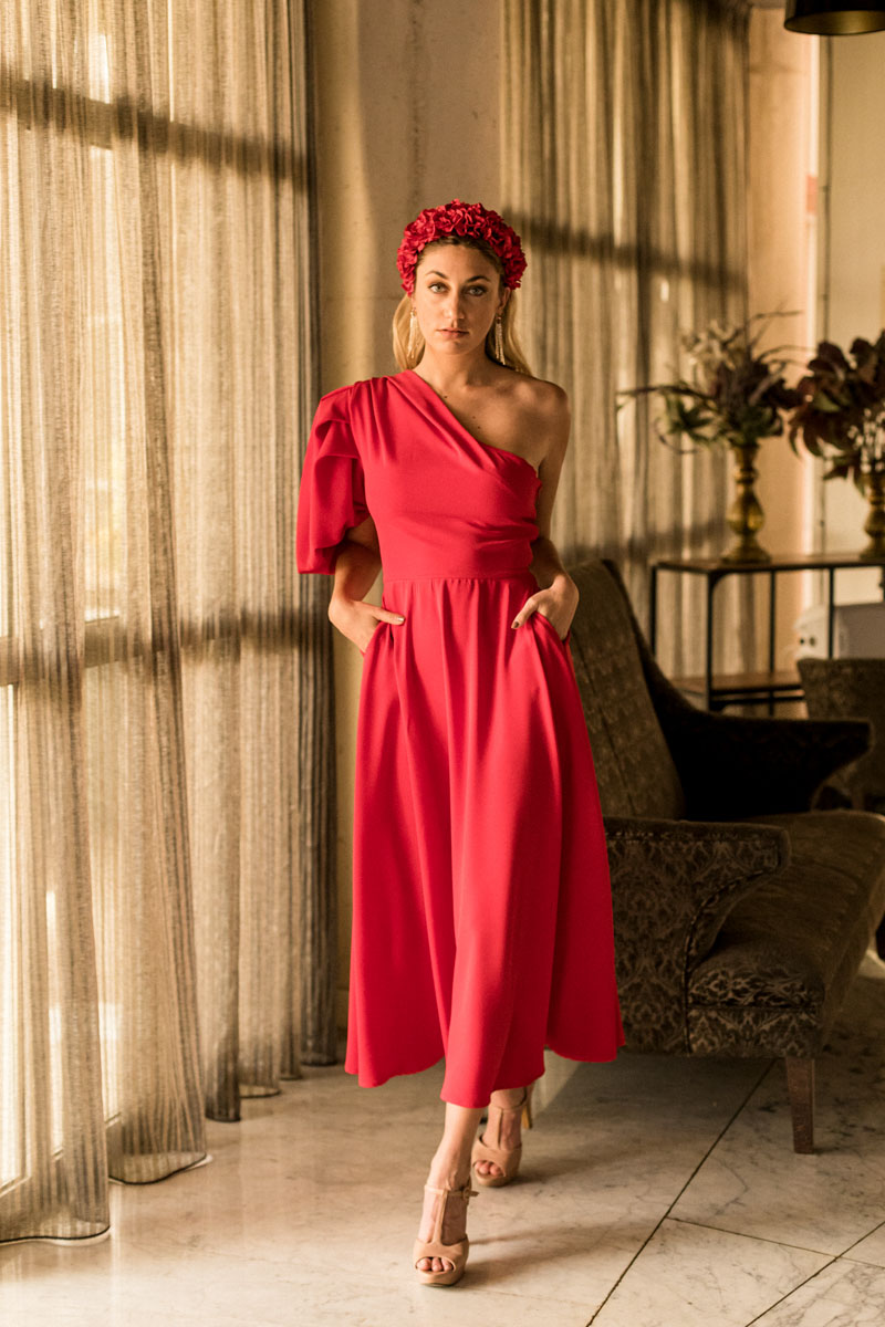 Vestido rojo escote asimétrico